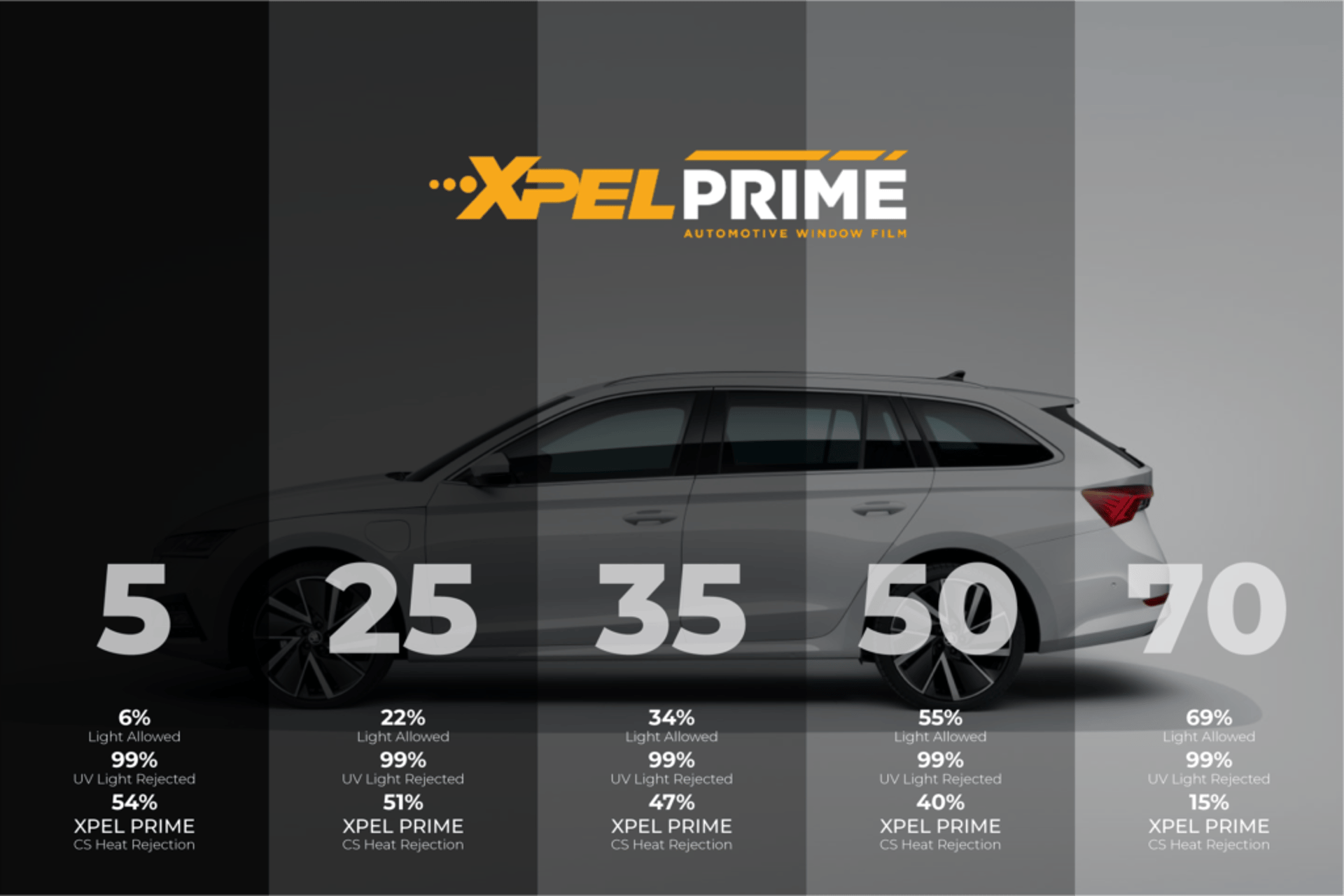 PRIME CS is a high-quality carbon window tint designed to enhance comfort, reduce glare, and protect your vehicle’s interior from harmful UV exposure. It delivers a sleek, factory-style appearance while maintaining excellent optical clarity and long-term colour stability.